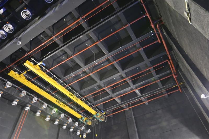 側(cè)臺裝景行車位于左右兩側(cè)側(cè)舞臺上空。行車用于大型或重型布景部件的裝配。